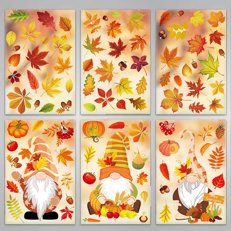 - THNAKSGIVING DECORATIONS: WIDE APPLICATION: Our fall clings for glass windows adhere to various surfaces such as windows, glass, mirrors, and refrigerator doors. Nice for fall, autumn, Thanksgiving and harvest season occasions. These thanksgiving clings for windows are not just decorations; they're delightful gifts for friends and family, adding a touch of harvest magic to any autumn decorations for home.
