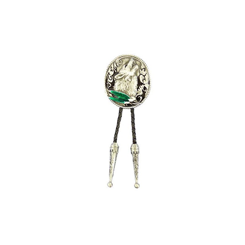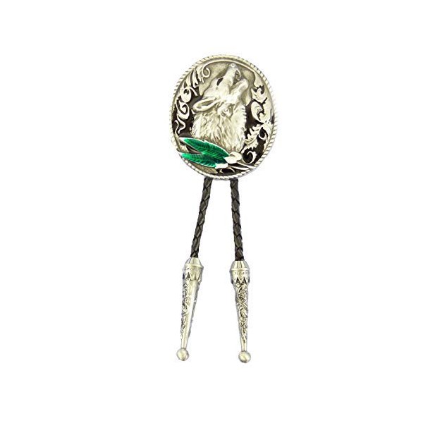 AW-Collection Bolo Tie Western Tie Howling Wolf Feathers Line Dance, Silver/Black, 92, Silver/black
