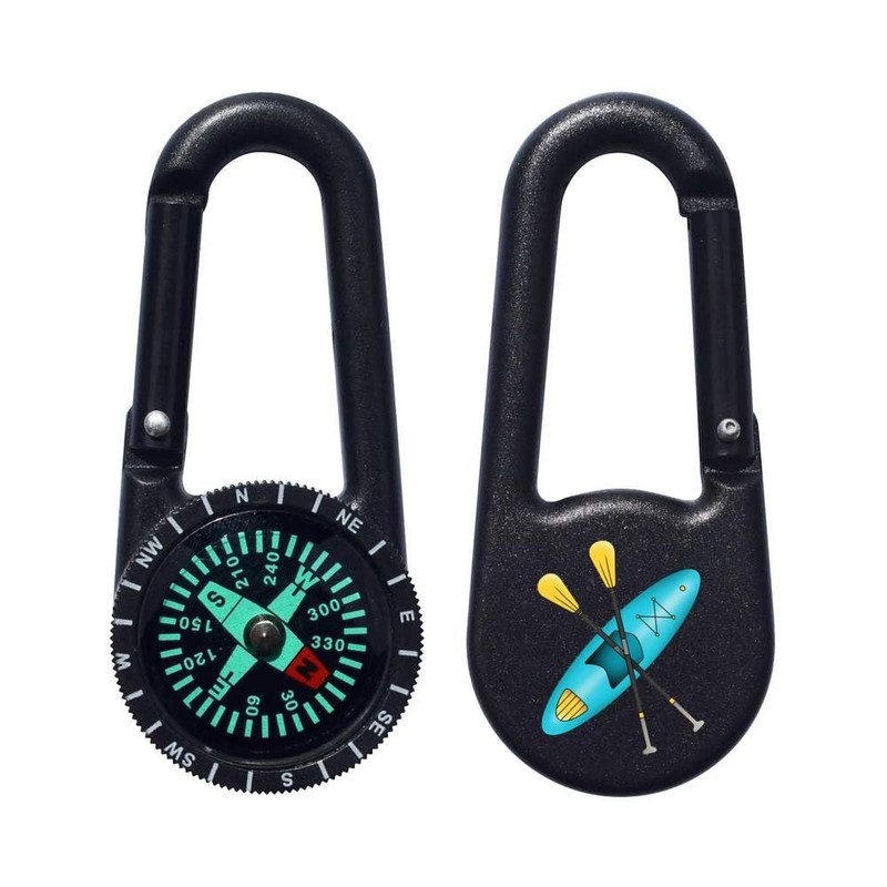 - A two in one keyring with a carabiner clip and handy compass