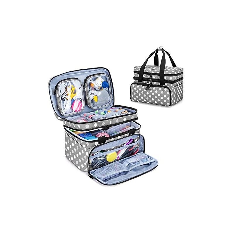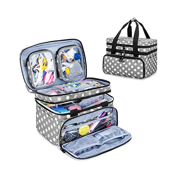 BAFASO Double Layer Sewing Accessories Organiser with 2 Detachable Pouches, Large Sewing Storage Bag for Sewing Tools, Polka Dots