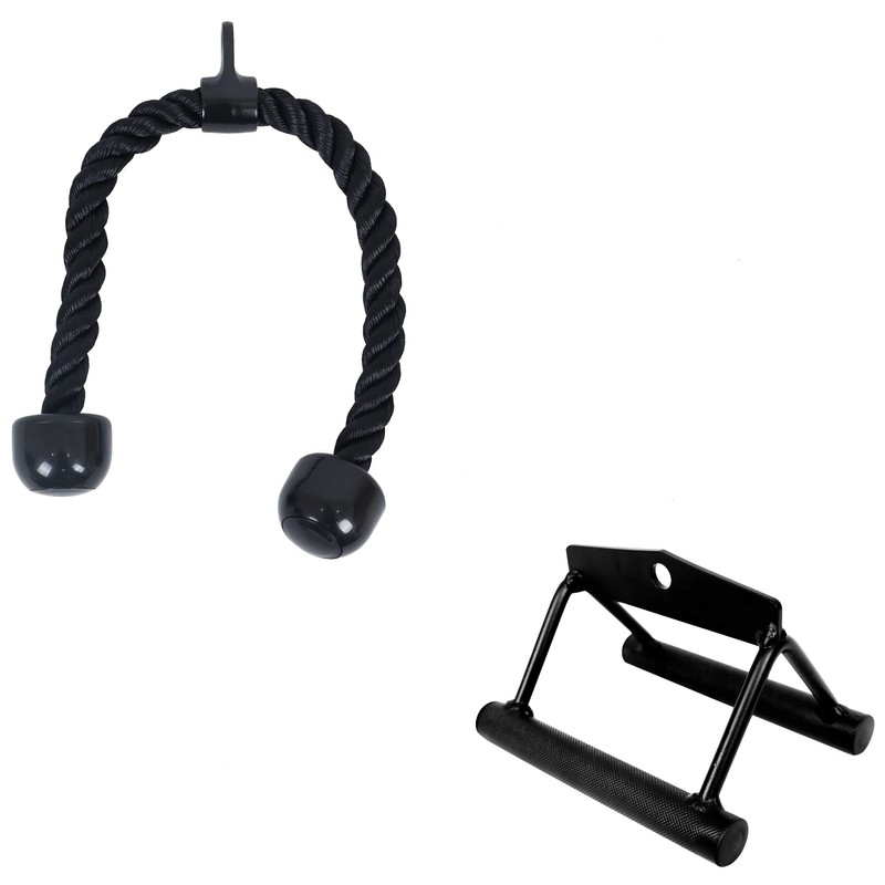 - Full combo includes: 1x Tricep Rope, 1x V-Handle. Universal design fits most cable systems