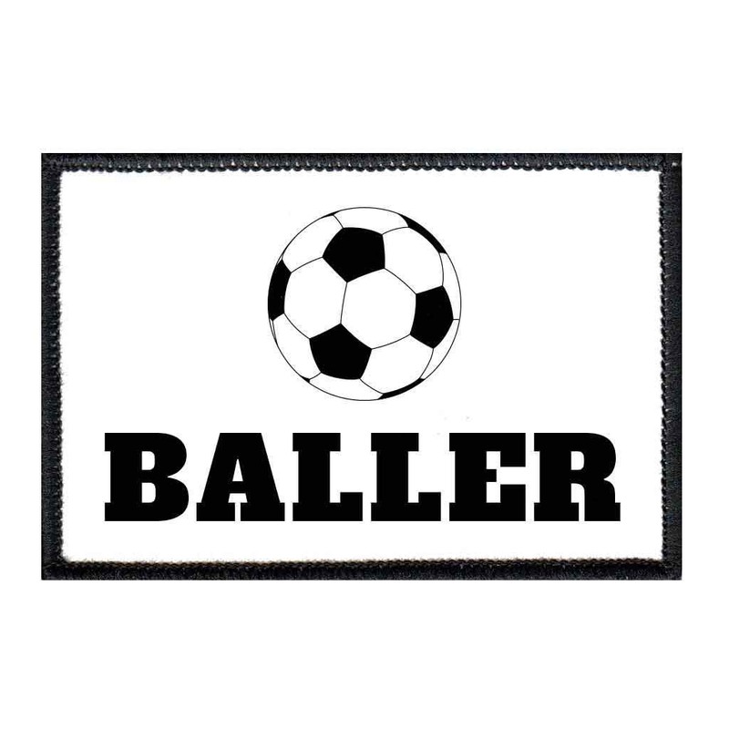 Baller - Soccer Morale Patch | Hook and Loop Attach for Hats, Jeans, Vest, Coat | 2x3 in | by Pull Patch