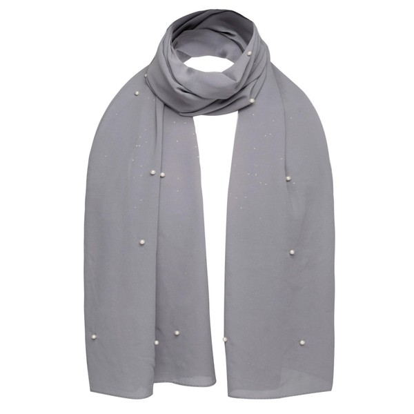 Basic Sense Chiffon Pearl Scarf Luxurious Head Wrap Hijab, Grey