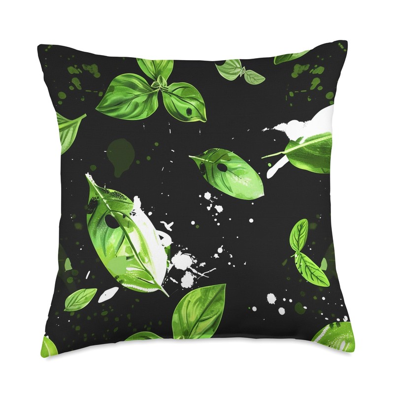 Basil Leaves Abstract Color Splash Throw Pillow