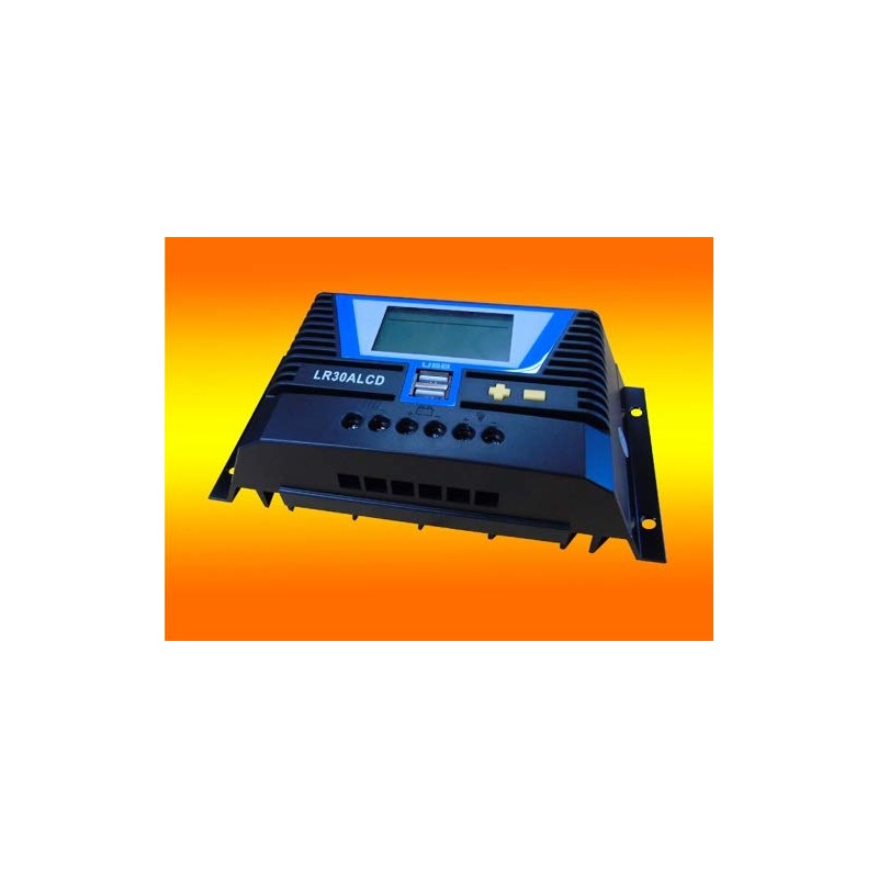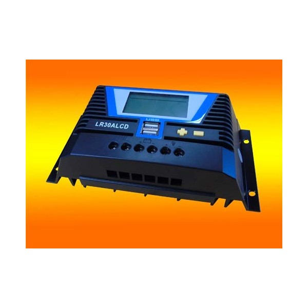 - The 30A LCD charge controller monitors the solar panels and the battery automatically.