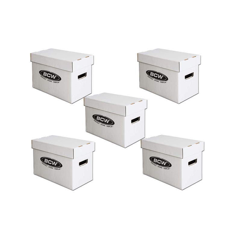 The BCW Storage Box is the highest quality, most competitively priced cardboard storage box on the market today. They are constructed of white corrugated paper and have a 200 lb. test strength. Use this box to store and protect all your valuable, collectible comics.