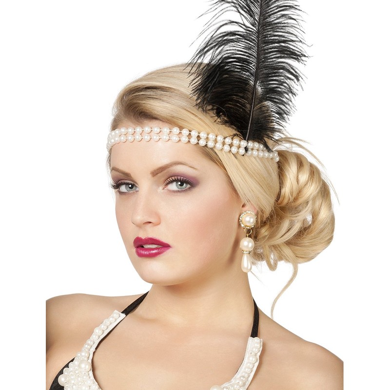 Bead Charleston Headband with Feather