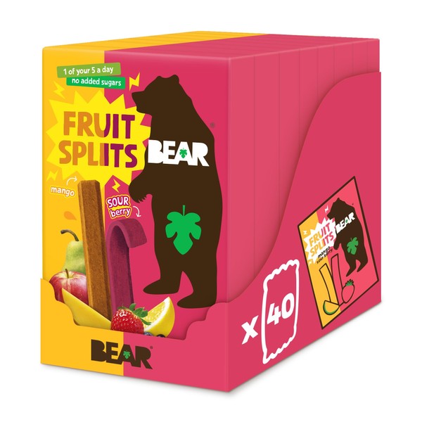BEAR Sour Berry & Mango Fruit Splits - Delicious Real Fruit - Healthy - 8 x 5 (40 Packs)