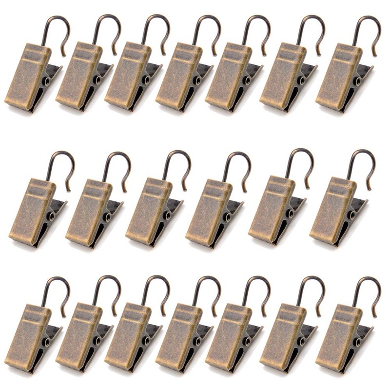 BEELY 20 Curtain Clips w/Hook - Antique Brass