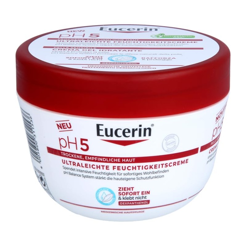 Eucerin Gel-Creme mit leichter Textur schützt und verleiht empfindlicher Haut Komfort, ohne Rückstände zu hinterlassen. Stellt Feuchtigkeit wieder her für eine glatte und geschmeidige Haut. Nicht komedogen. Zieht schnell ein und belastet die Haut nicht.
