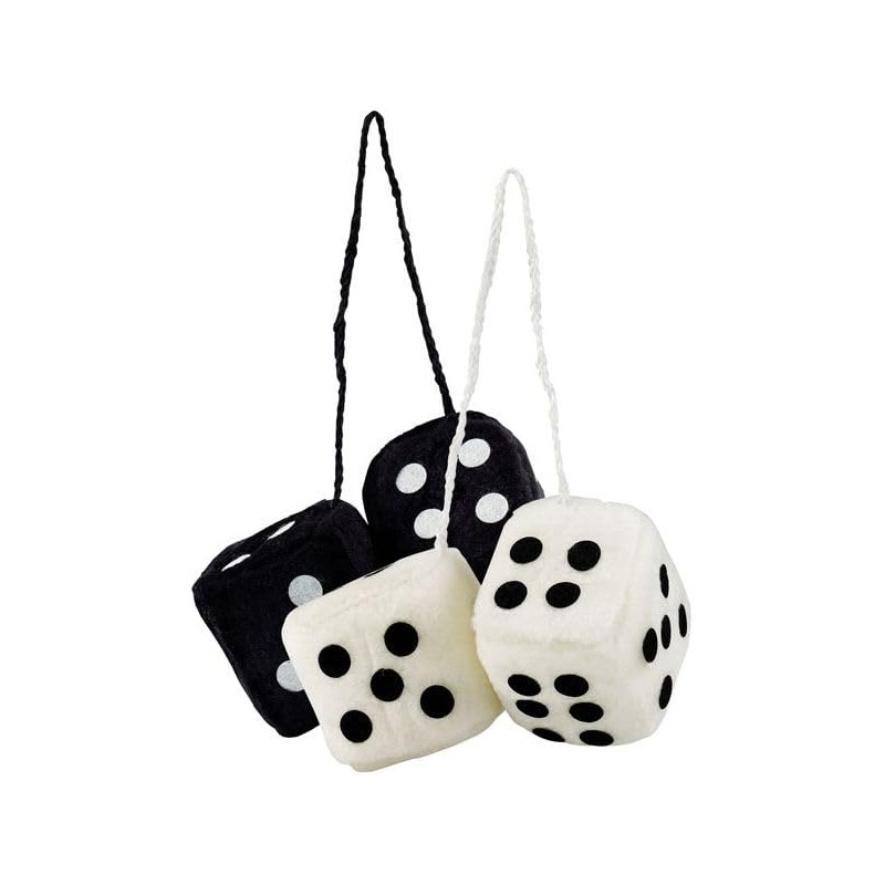 - ''' White And Black Assorted#||# Your Order Will Be Either 1 Set Of Black Or 1 Set Of White#||# Hanging fuzzy dice#||# 10.5-inch cord#||# Great gift idea'''