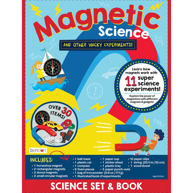 • INCLUDES: book, stick, paper cups, EVA foam pieces, compass, car, PET plate, iron powder, magnet set, and a sticker sheet