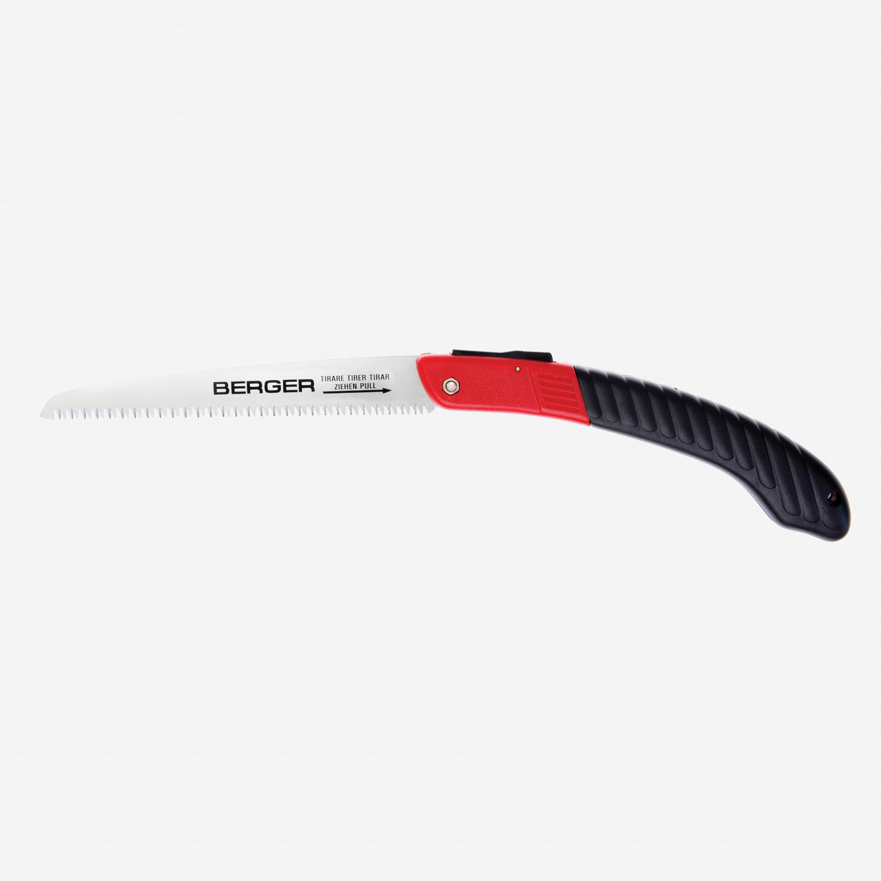 | Berger Straight Blade Pruning Saw, 7" (Manufacturer provided photo may slightly differ from actual product.) The BERGER 7" Folding Saw is made of hard chrome-plated carbon steel and is corrosion-resistant, making it a very durable and long lasting tool. The triple-ground and impulse-hardened tooth tips make for a very smooth efficient cut. This enables a precise, clean cut to minimize wound areas, reducing the risk of fungal or bacterial contamination. In addition, the grip handle and the folding mechanism with safety lock ensure safe and comfortable use. Features Replaceable corrosion-resistant straight 7" saw blade (part # 96650) Impulse hardened tips With safety lock Pull Style Saw Folding Ergonomic grip handle Coarse teeth for soft wood (7.5 tpi) 6.9oz / 16.1" |
