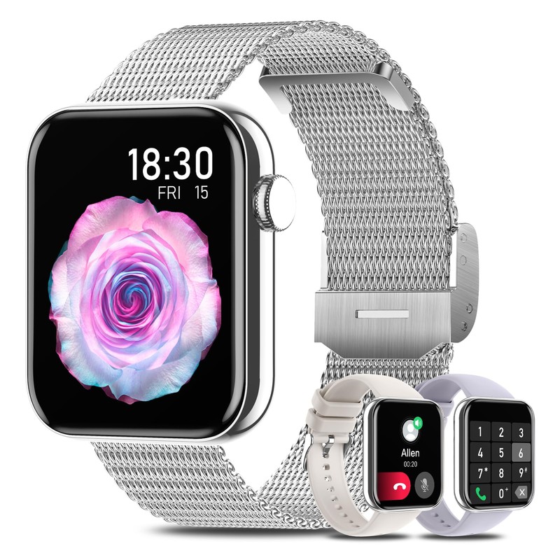 • FULL TOUCH SCREEN & PERSONALISED DIAL:1.85 inch with a resolution of 240*286 pixels, ultra clear color touch screen. There are more than 200 dials to choose from in the app, and you can also customize the dial (your favorite photos, including your pets, family members). This women's smart watch has 3 straps. (Silver Steel, Beige Silicone, Lavender Purple) Experience multiple styles at the same time.