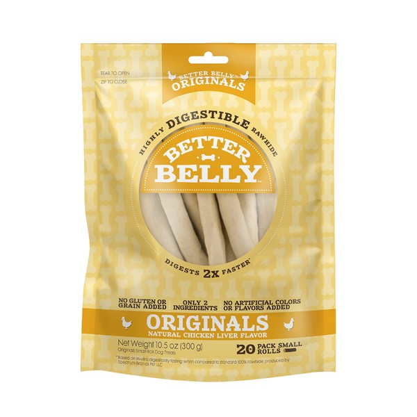 Better Belly Originals Natural Chicken Liver Flavor Small Rolls 20 Count, Highly Digestible Rawhide