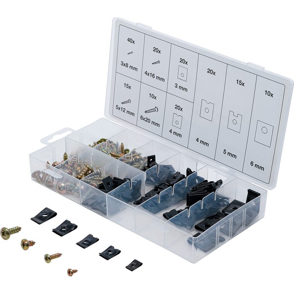 - 85 Kotflügelklemmen/Karosseriemuttern in verschiedenen Größen und Formen