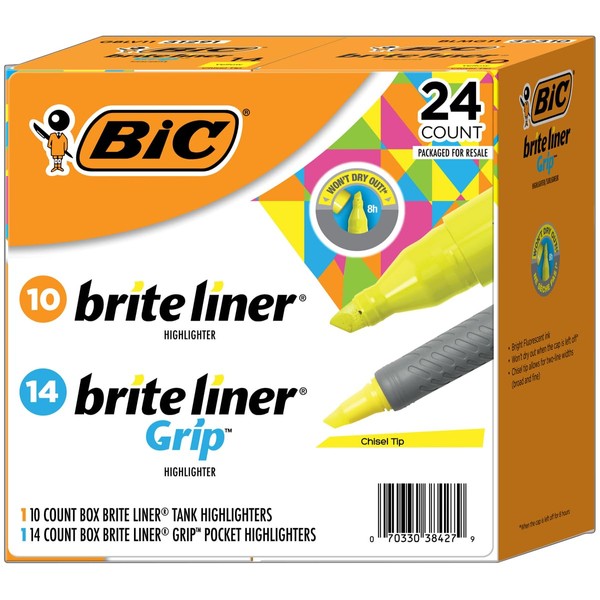 BIC Brite Liner Highlighter Combo Pack, Chisel Tip, Fluorescent Yellow, 24 Count