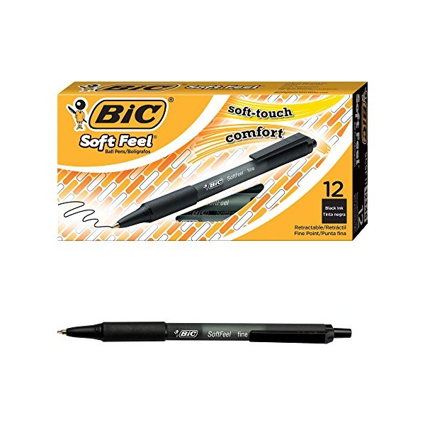 BIC Soft Feel Ball Pen, Black, Fine Point, 12-Count
