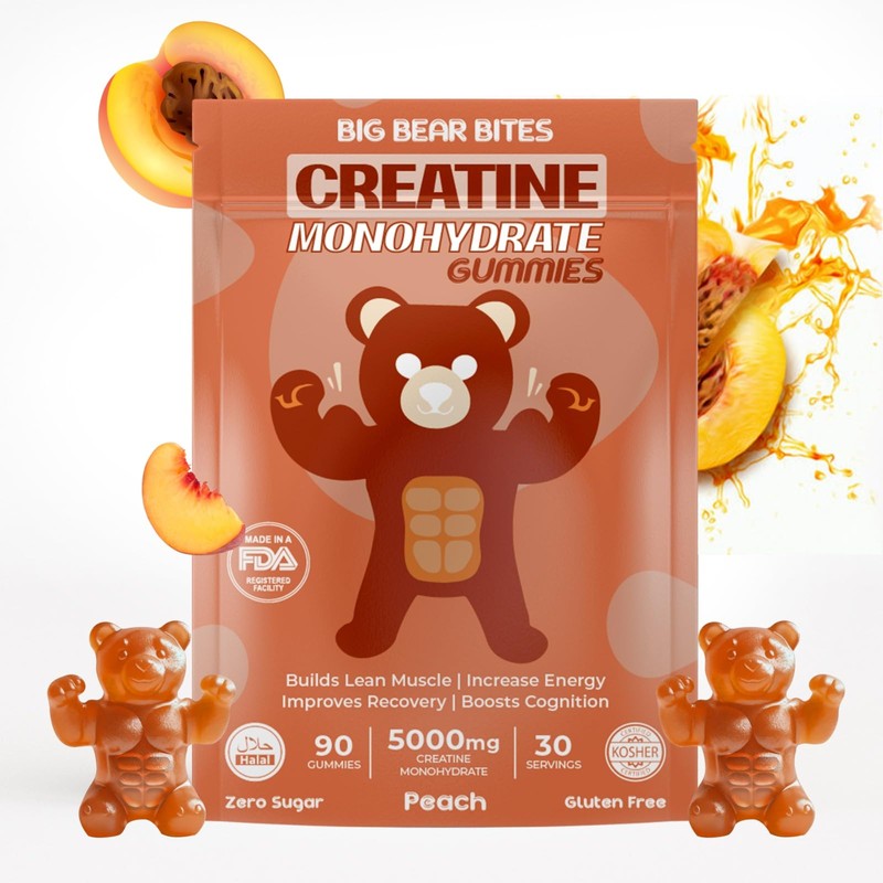 Big Bear Bites Creatine monohydrate gummies Peach flavor (Large, Peach)