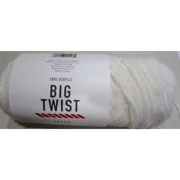This high-quality Big Twist yarn is perfect for all your knitting and crocheting projects. It comes in a beautiful white color and has a twisted style that adds a unique texture to your creations. The Worsted weight and Fiber Content of Acrylic make it easy to work with and perfect for all levels of experience. The unit of sale is a single skein, making it perfect for small projects or for mixing and matching with other colors.