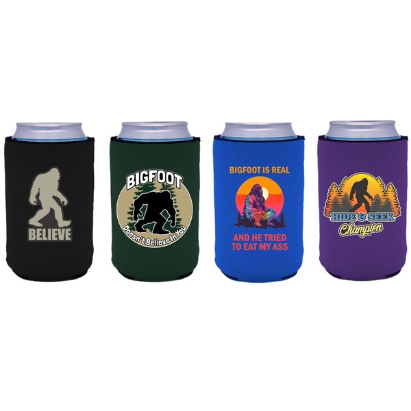 Bigfoot Funny Can Coolie Designs 4 Pack