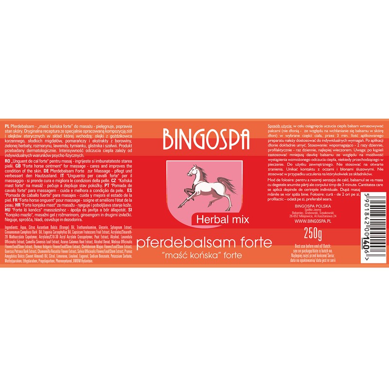 BINGOSPA Warming Horse Balm with Alpine Herbs for Body Care and Massage 250 g