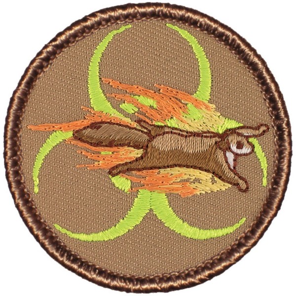 Biohazard Flaming Flying Squirrel Patrol Patch - 2" Diameter Round Embroidere...