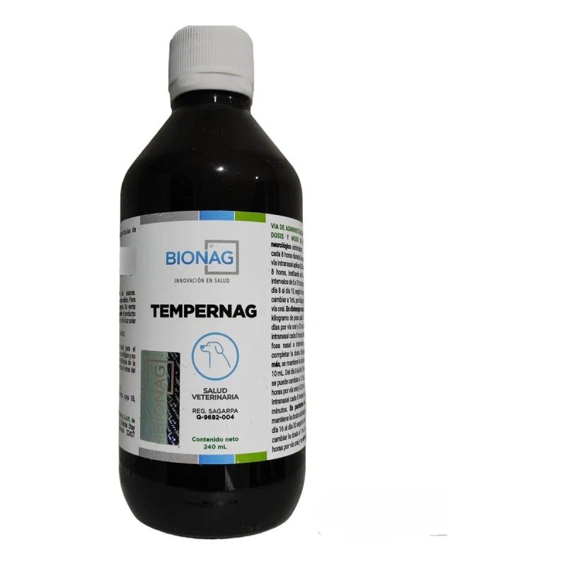 Bionag Tempernag es un producto innovador que utiliza nanopartículas de plata, conocido por sus propiedades antivirales y su capacidad para tratar el Moquillo Canino promoviendo la salud y el bienestar de tu perrito. Este tratamiento alternativo se presenta en un formato de 240 ml, ideal para quienes buscan tratar el Distemper.