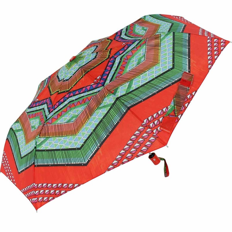 Bisetti Etnico Boho Women's Pocket Umbrella Open-Close Automatic, red, Pocket umbrella with automatic open/close function