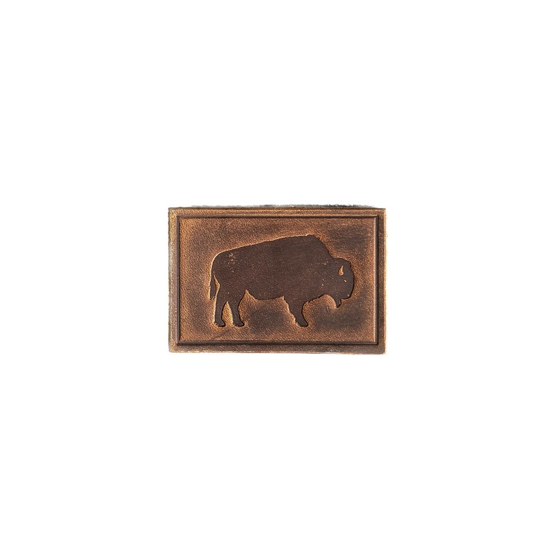 Bison Leather Patches with optional hook side fastener added, 100% Full Grain Leather, Rectangle, 3" x 2" (Rustic Brown, Patch Only)