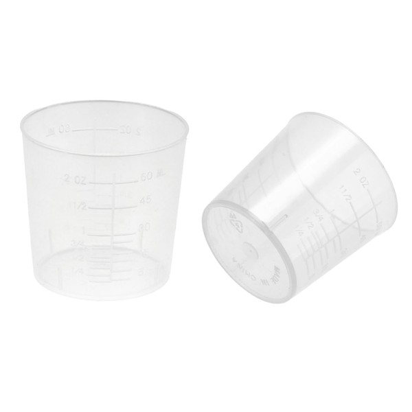 - Clear graduated cups-- graduation marks molded in and will not rub off,graduated measuring