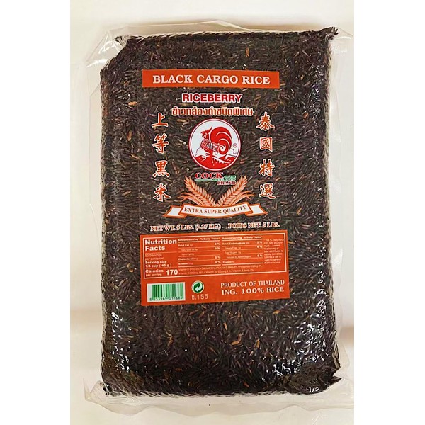 Black Cargo Rice, Thai Riceberry, 5 lbs