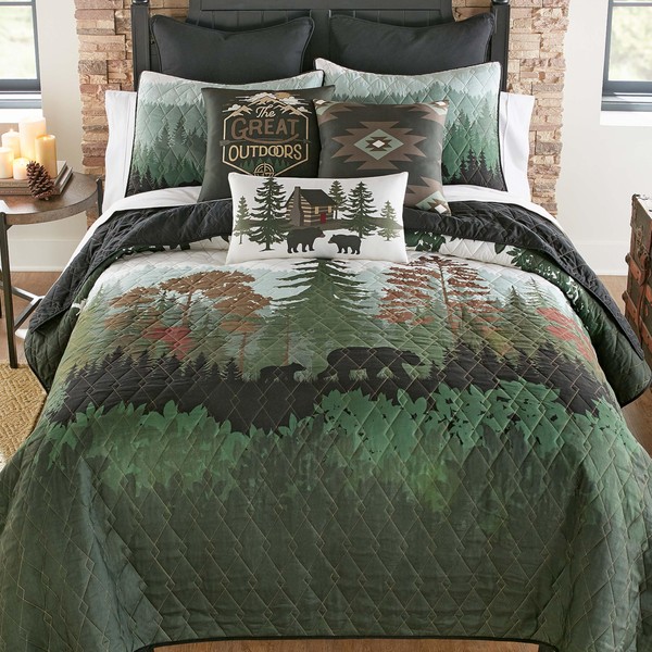 Black Forest Décor Pine Grove Bears Quilt Bed Set - Queen, Rustic Wildlife Bear Bedding - 90" x 90"