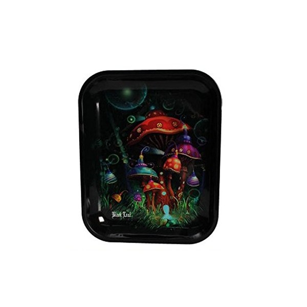 'Black Leaf' rolling tray as a decorative rotating mat made of sturdy metal.