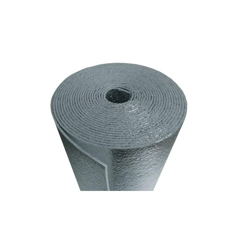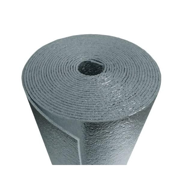 - One layer closed-cell foam bonded between two layers of highly reflective metalized aluminum polyester film.