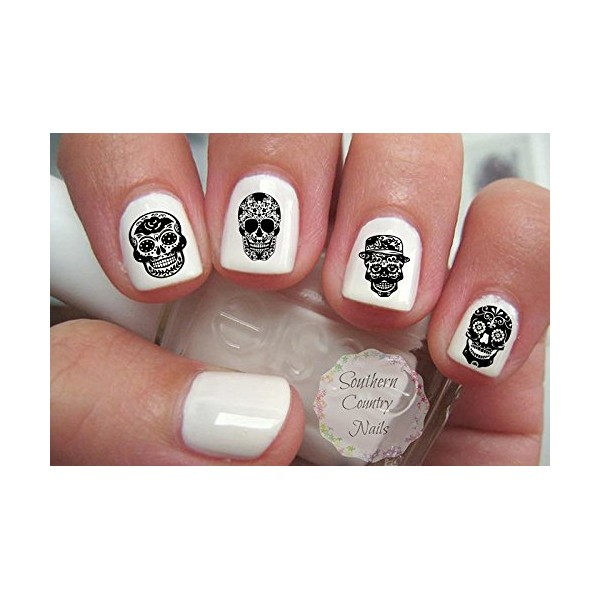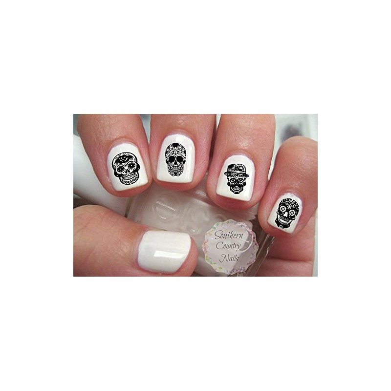 Black Sugar Skull Set 2 Nail Art Decals