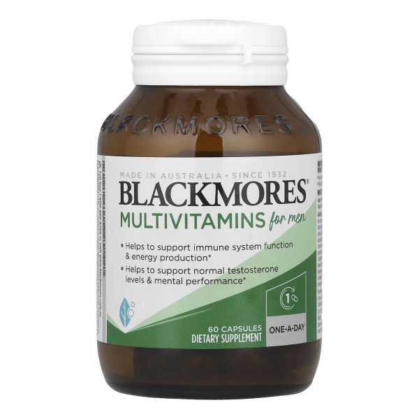 - Fácil fórmula para tomar una al día Fabricado en Australia Desde 1932 Suplemento dietético Una al día Ayuda al sistema inmunológico y producción de energía. Ayuda a mantener niveles normales de testosterona y rendimiento mental. Beneficios de Blackmores Multivitaminas para Hombres: Fórmula fácil para tomar una al día. Apoya la salud general y bienestar.