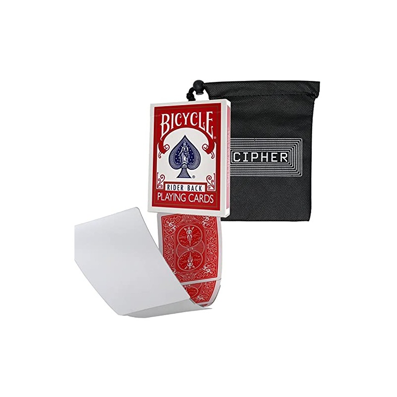 Blank Face Bicycle Cards - Gaff Rider Back Bicycle Deck - Includes Cipher Card Bag (Red)