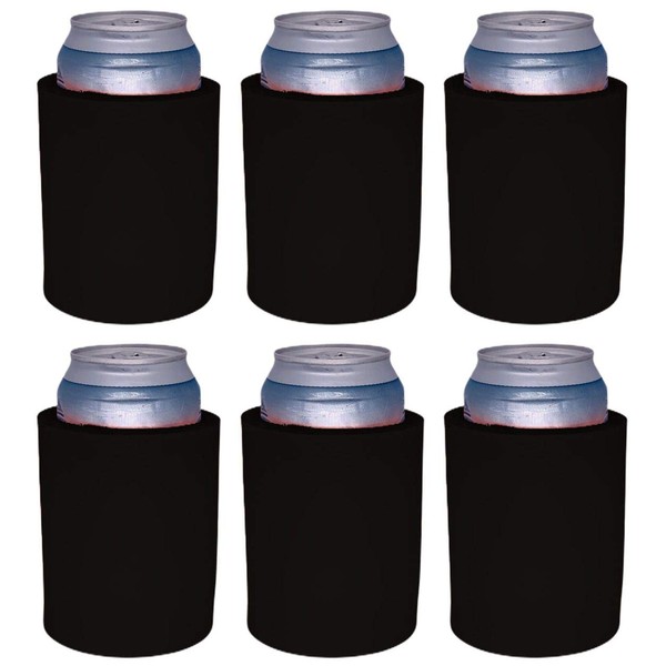 Blank Thick Foam Old School Can Cooler (6 Pack, Black)