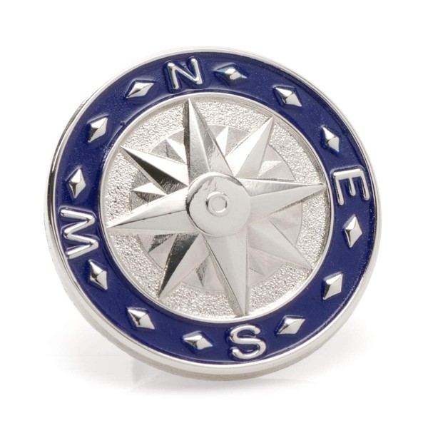 Never get lost in your bedroom closet again. Navigate your way out of any tricky situation with this attractive compass lapel pin. Designed to look like an authentic compass, the blue enamel adds a pop of color to your lapel, and the high polish finish gives it a sleek look. Silver plated base metal with clutch back closure.