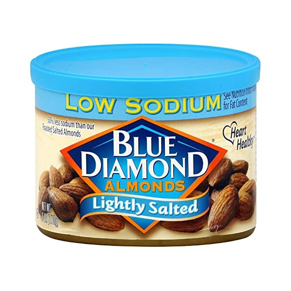 - Contains 1 - 6 ounce tins of Blue Diamond Lightly Salted Almonds