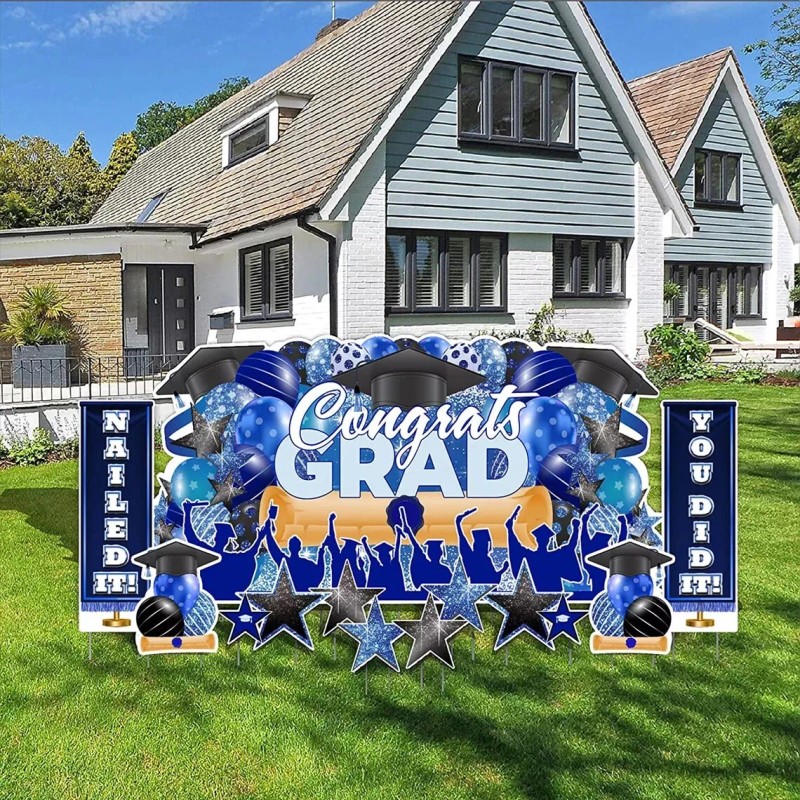 Blue Oversized Congrats Grad, Graduation Yard Sign Display | 11pc Grad Party