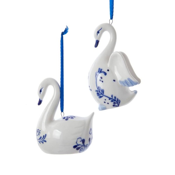 - Kurt Adler Porcelain Blue White Swan Ornaments 2 Assorted