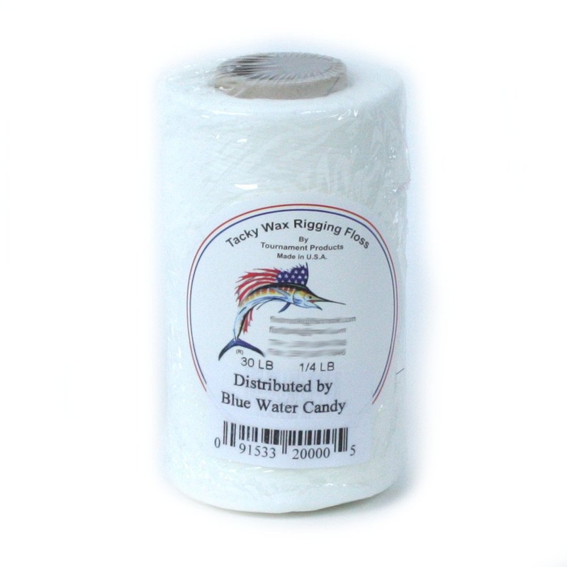 Rigging floss from Bluewater Candy is tacky and strong. It’s great for rigging baits and/or tying skirts to trolling lures – like building your own sea witches. We stock it in natural color. We’ve got Bluewater Candy floss in 35lb test. The 35lb floss comes in 1/4lb spools.
