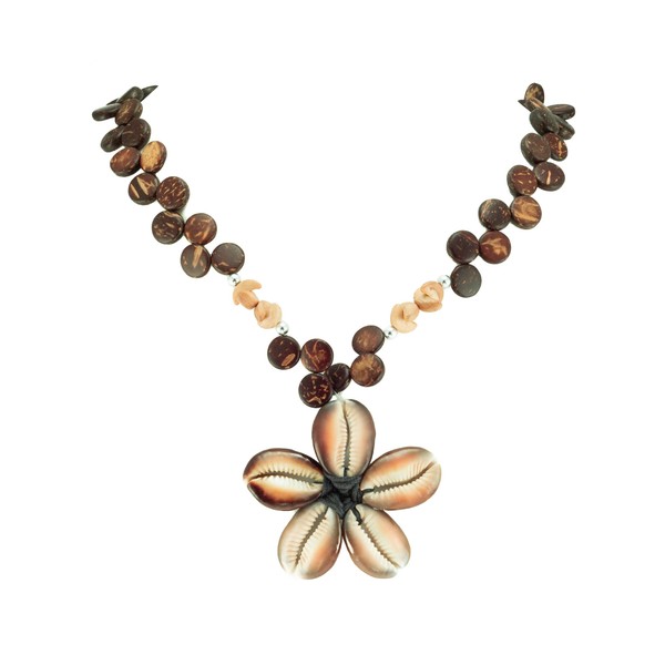 BlueRica Kaput Shells Flower on Brown Coconut Shell Disc Beads Necklace