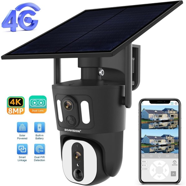 BOAVISION 8MP 4G Dual Screen Solar Camera 6X Zoom 4K Human Auto Tracking Camera