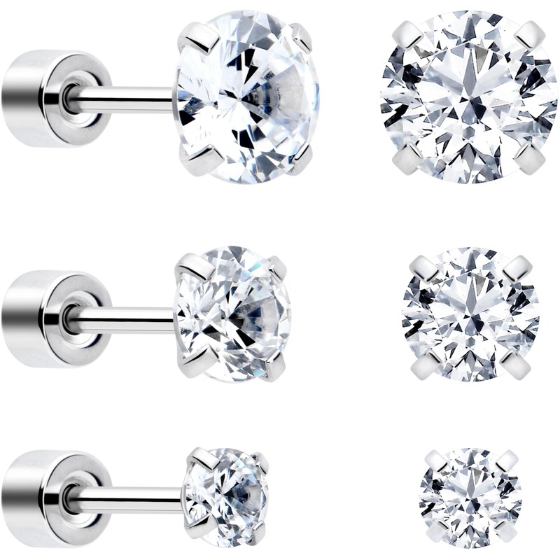 Body Candy Flat Back Earrings Studs - CZ Flat Back Stud Earrings - 3 Pairs