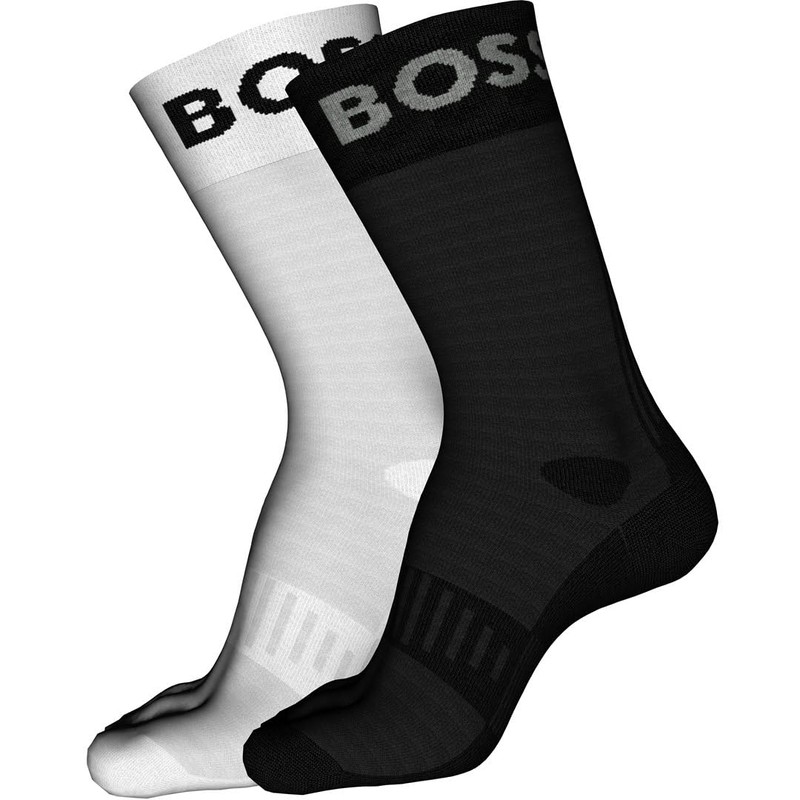 BOSS Men's 2-Pack Bold Logo Solid Cotton Socks, Blank White/Deep Black, 7-13