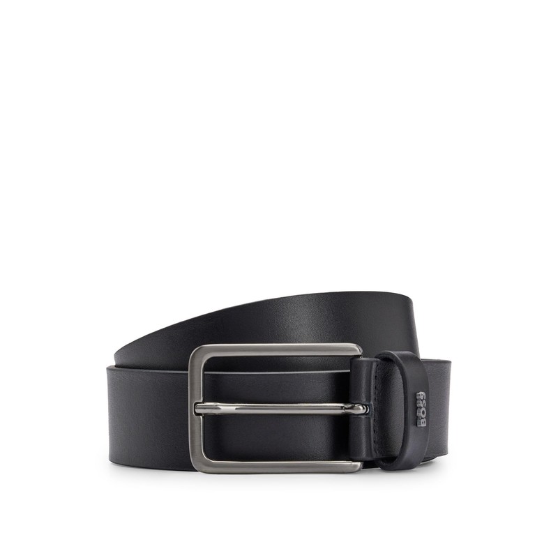 BOSS Men's Lettering Logo Loop Smooth Leather Belt, Black