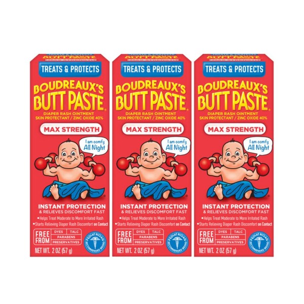 Boudreaux's Butt Paste Maximum Strength Diaper Cream, 2 Ounce (3 Pack)